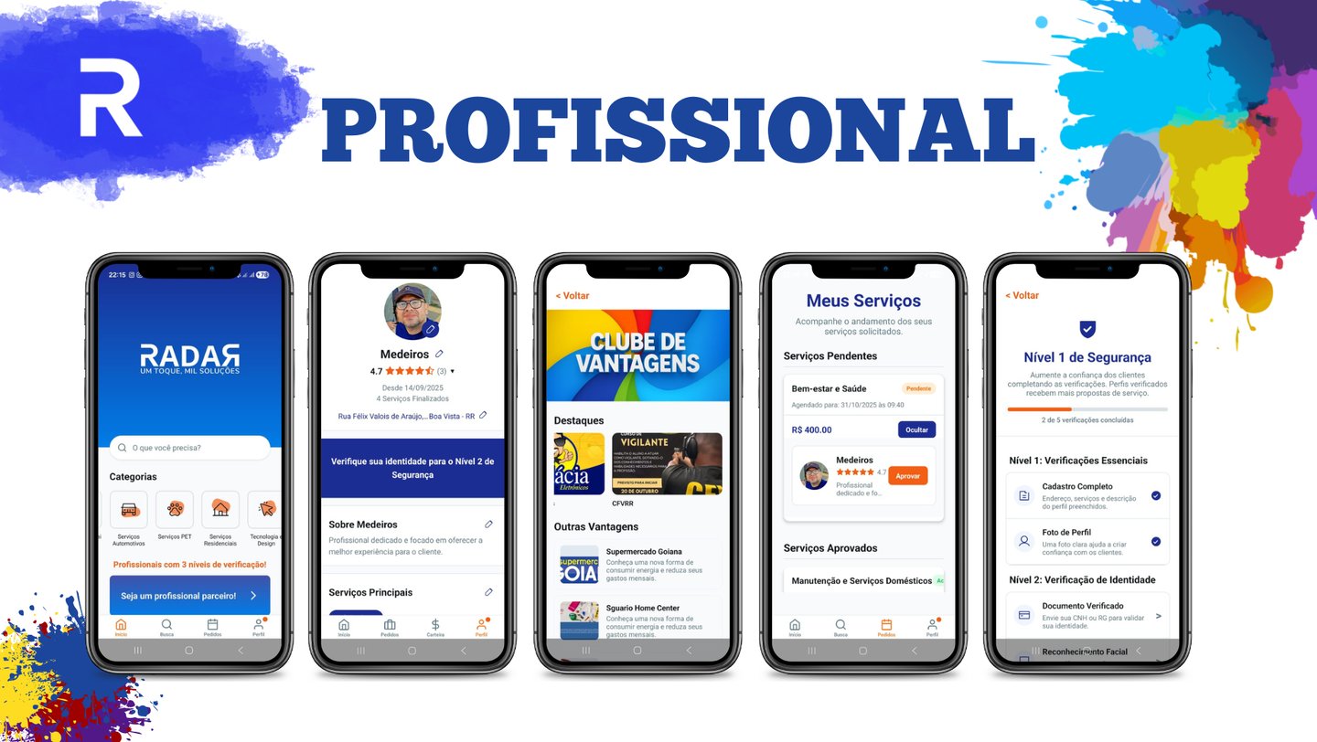 O RADAR PRO é o novo aplicativo de serviços, criado para conectar quem precisa com quem sabe fazer. Estamos construindo a ponte mais rápida, segura e prática entre clientes e os melhores profissionais da região.